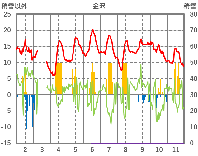 | 日 | 時 | 気温 | 降水 | 風向/風速 | 日照 | 積雪 | 降雪 |