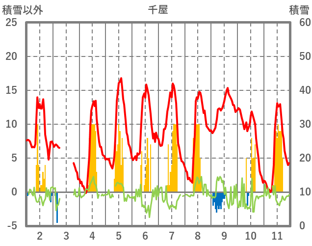| 日 | 時 | 気温 | 降水 | 風向/風速 | 日照 | 積雪 | 降雪 |