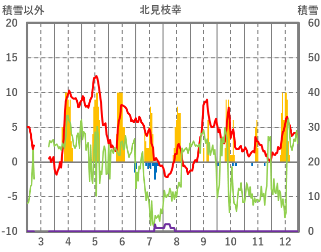 | 日 | 時 | 気温 | 降水 | 風向/風速 | 日照 | 積雪 | 降雪 |