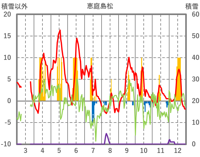 | 日 | 時 | 気温 | 降水 | 風向/風速 | 日照 | 積雪 | 降雪 |