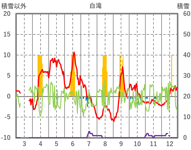 | 日 | 時 | 気温 | 降水 | 風向/風速 | 日照 | 積雪 | 降雪 |