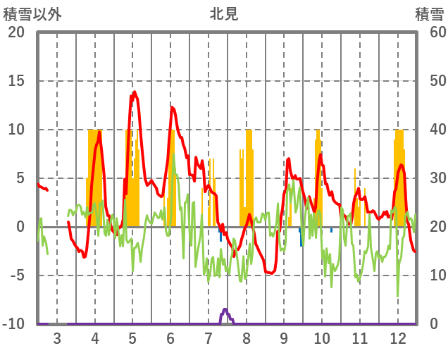 | 日 | 時 | 気温 | 降水 | 風向/風速 | 日照 | 積雪 | 降雪 |