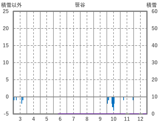 | 日 | 時 | 気温 | 降水 | 風向/風速 | 日照 | 積雪 | 降雪 |