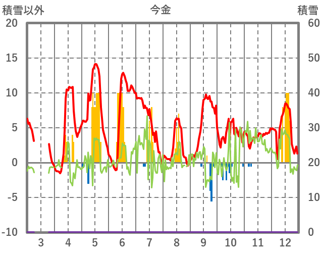 | 日 | 時 | 気温 | 降水 | 風向/風速 | 日照 | 積雪 | 降雪 |