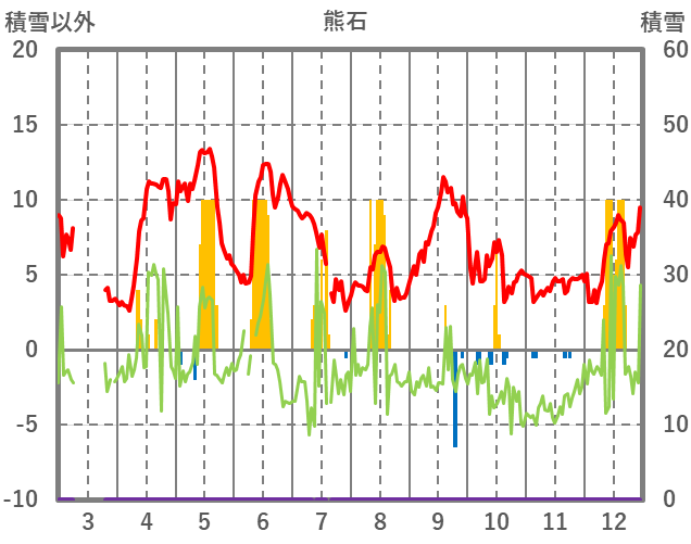 | 日 | 時 | 気温 | 降水 | 風向/風速 | 日照 | 積雪 | 降雪 |