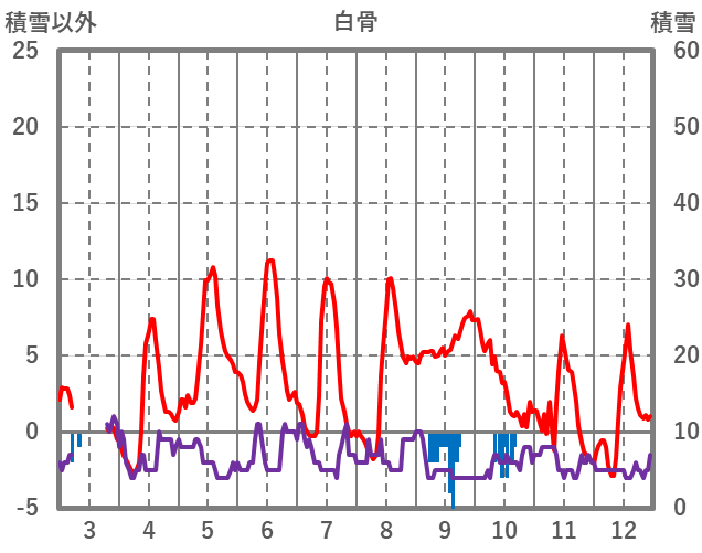 | 日 | 時 | 気温 | 降水 | 風向/風速 | 日照 | 積雪 | 降雪 |