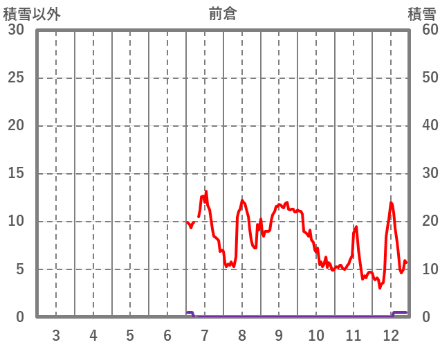 | 日 | 時 | 気温 | 降水 | 風向/風速 | 日照 | 積雪 | 降雪 |