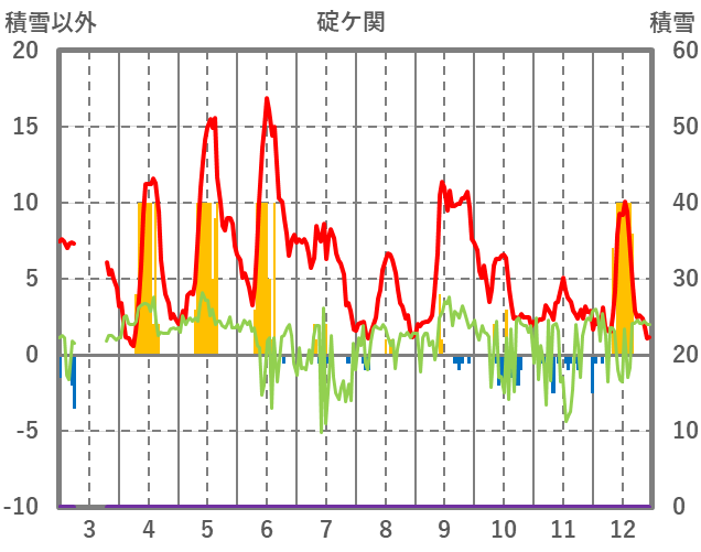 | 日 | 時 | 気温 | 降水 | 風向/風速 | 日照 | 積雪 | 降雪 |