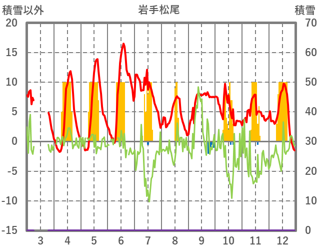 | 日 | 時 | 気温 | 降水 | 風向/風速 | 日照 | 積雪 | 降雪 |