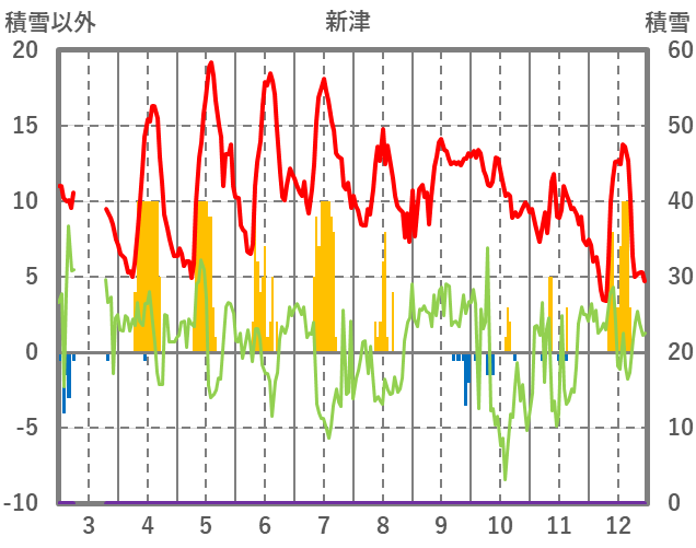 | 日 | 時 | 気温 | 降水 | 風向/風速 | 日照 | 積雪 | 降雪 |