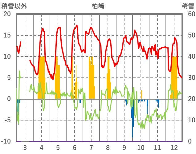 | 日 | 時 | 気温 | 降水 | 風向/風速 | 日照 | 積雪 | 降雪 |