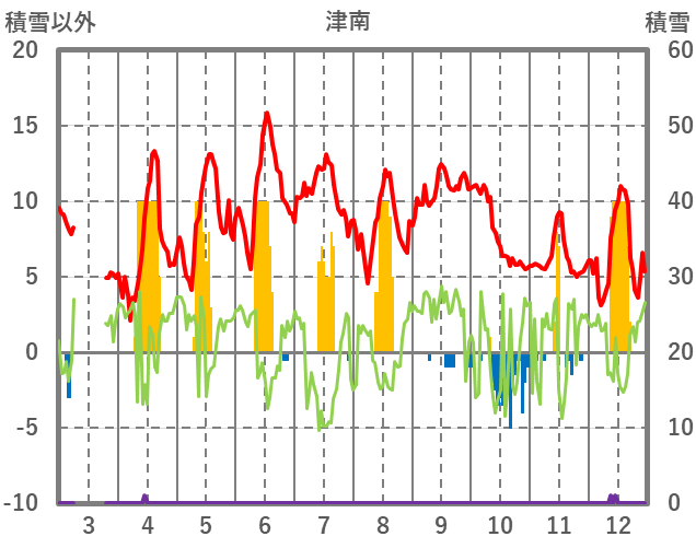 | 日 | 時 | 気温 | 降水 | 風向/風速 | 日照 | 積雪 | 降雪 |