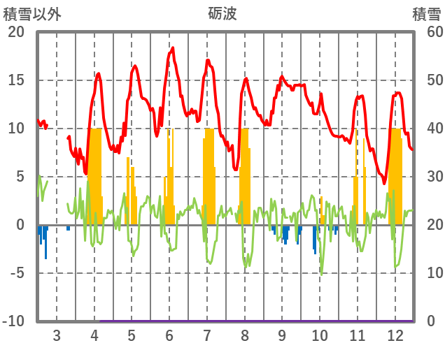 | 日 | 時 | 気温 | 降水 | 風向/風速 | 日照 | 積雪 | 降雪 |