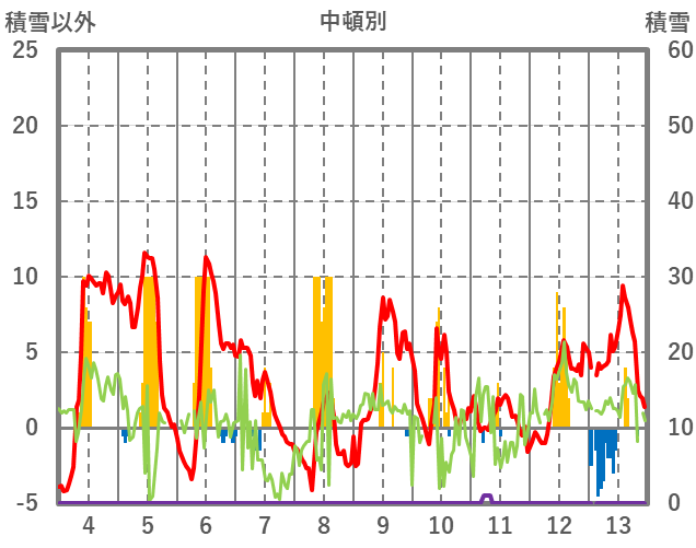 | 日 | 時 | 気温 | 降水 | 風向/風速 | 日照 | 積雪 | 降雪 |