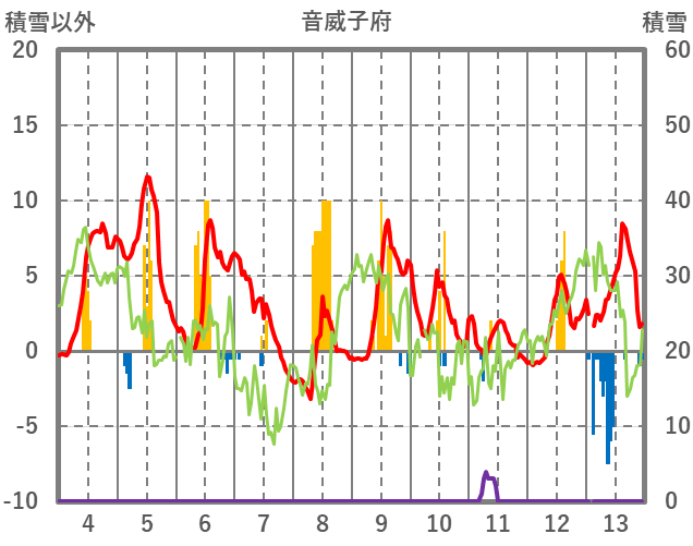 | 日 | 時 | 気温 | 降水 | 風向/風速 | 日照 | 積雪 | 降雪 |