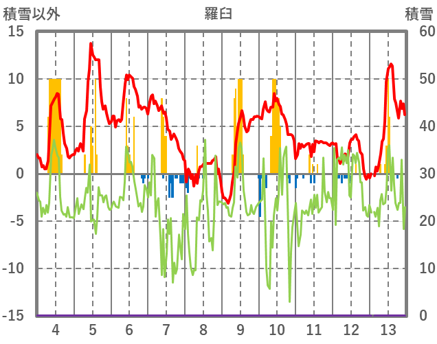 | 日 | 時 | 気温 | 降水 | 風向/風速 | 日照 | 積雪 | 降雪 |