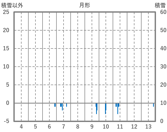 | 日 | 時 | 気温 | 降水 | 風向/風速 | 日照 | 積雪 | 降雪 |