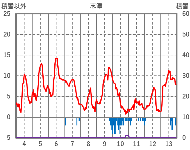 | 日 | 時 | 気温 | 降水 | 風向/風速 | 日照 | 積雪 | 降雪 |