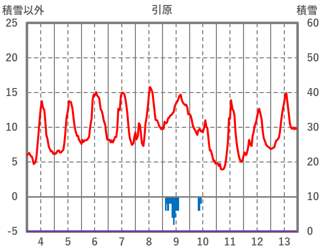 | 日 | 時 | 気温 | 降水 | 風向/風速 | 日照 | 積雪 | 降雪 |