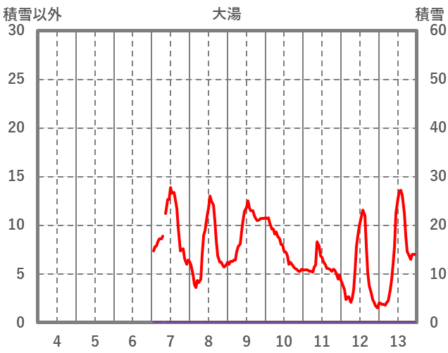 | 日 | 時 | 気温 | 降水 | 風向/風速 | 日照 | 積雪 | 降雪 |