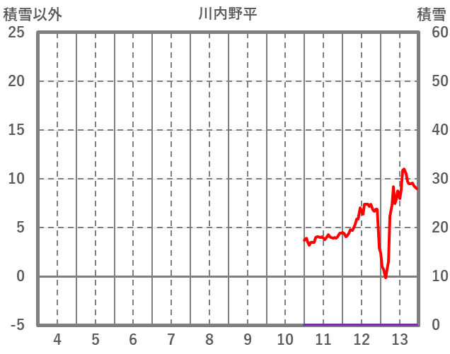 | 日 | 時 | 気温 | 降水 | 風向/風速 | 日照 | 積雪 | 降雪 |