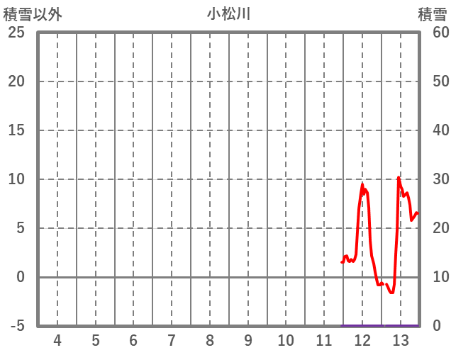 | 日 | 時 | 気温 | 降水 | 風向/風速 | 日照 | 積雪 | 降雪 |