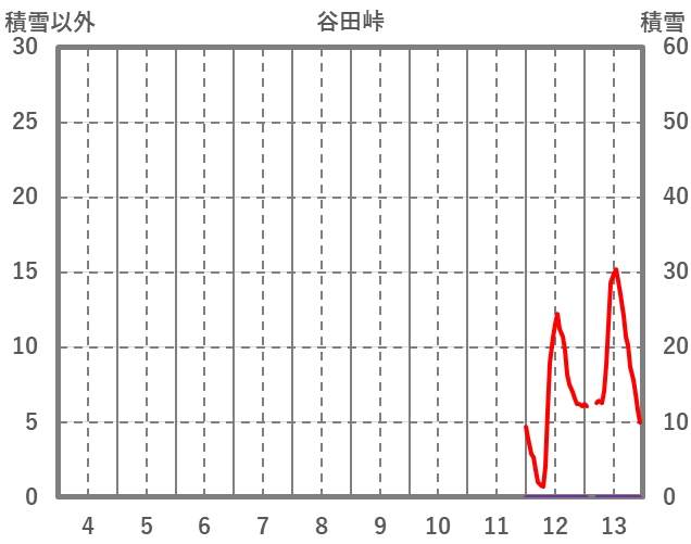 | 日 | 時 | 気温 | 降水 | 風向/風速 | 日照 | 積雪 | 降雪 |