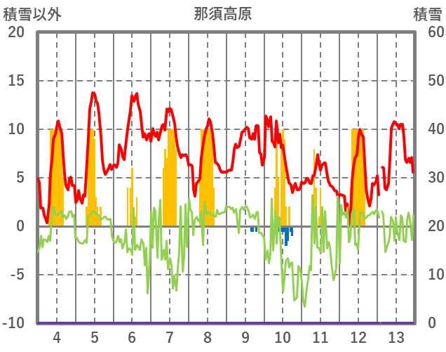 | 日 | 時 | 気温 | 降水 | 風向/風速 | 日照 | 積雪 | 降雪 |