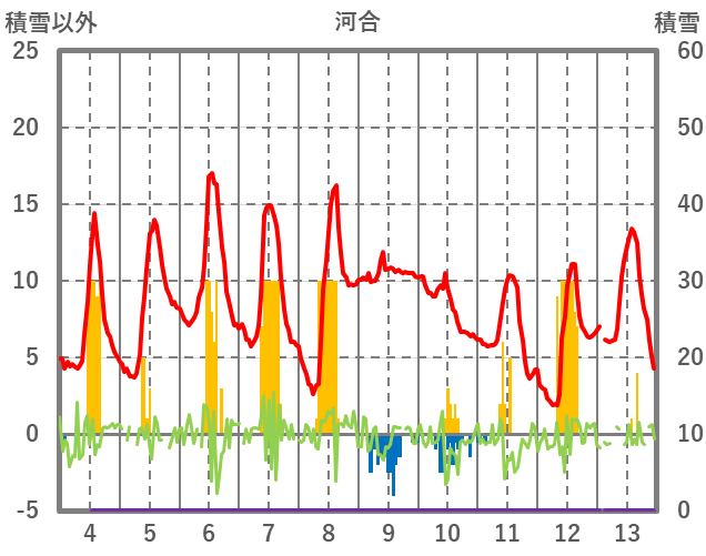 | 日 | 時 | 気温 | 降水 | 風向/風速 | 日照 | 積雪 | 降雪 |