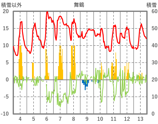| 日 | 時 | 気温 | 降水 | 風向/風速 | 日照 | 積雪 | 降雪 |
