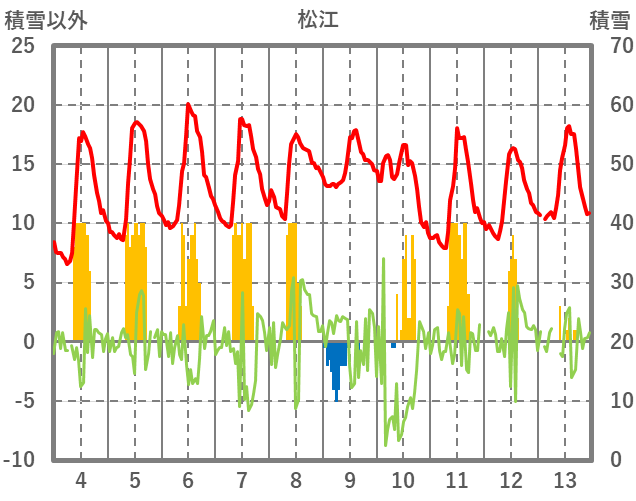 | 日 | 時 | 気温 | 降水 | 風向/風速 | 日照 | 積雪 | 降雪 |