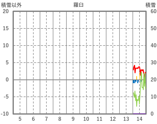| 日 | 時 | 気温 | 降水 | 風向/風速 | 日照 | 積雪 | 降雪 |