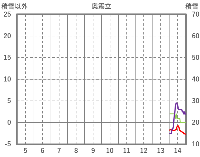 | 日 | 時 | 気温 | 降水 | 風向/風速 | 日照 | 積雪 | 降雪 |