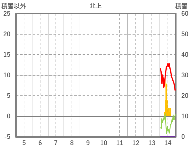 | 日 | 時 | 気温 | 降水 | 風向/風速 | 日照 | 積雪 | 降雪 |