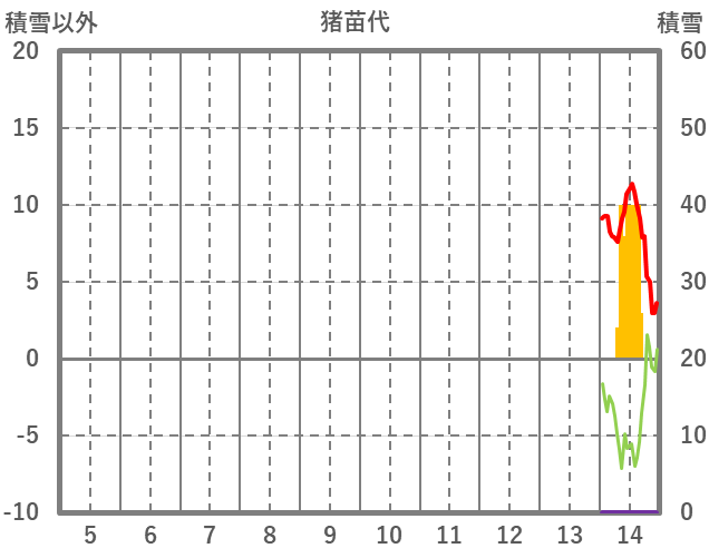 | 日 | 時 | 気温 | 降水 | 風向/風速 | 日照 | 積雪 | 降雪 |