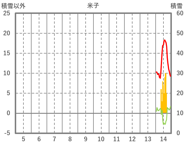 | 日 | 時 | 気温 | 降水 | 風向/風速 | 日照 | 積雪 | 降雪 |