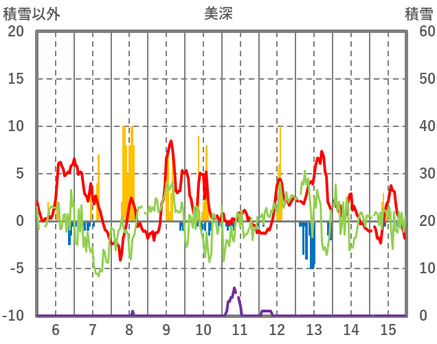 | 日 | 時 | 気温 | 降水 | 風向/風速 | 日照 | 積雪 | 降雪 |