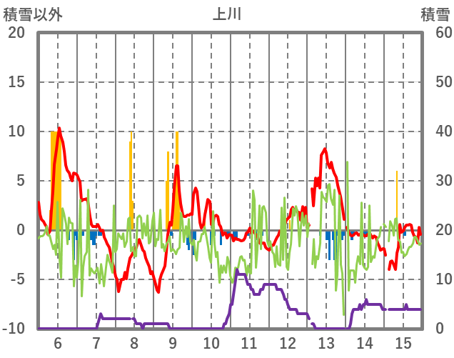 | 日 | 時 | 気温 | 降水 | 風向/風速 | 日照 | 積雪 | 降雪 |