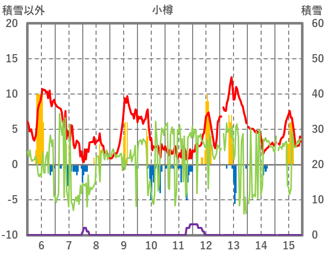 | 日 | 時 | 気温 | 降水 | 風向/風速 | 日照 | 積雪 | 降雪 |