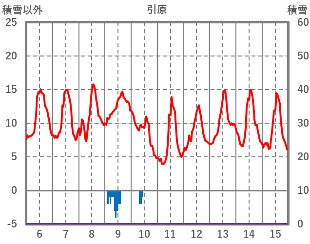 | 日 | 時 | 気温 | 降水 | 風向/風速 | 日照 | 積雪 | 降雪 |