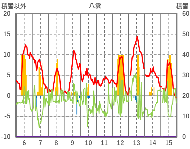 | 日 | 時 | 気温 | 降水 | 風向/風速 | 日照 | 積雪 | 降雪 |