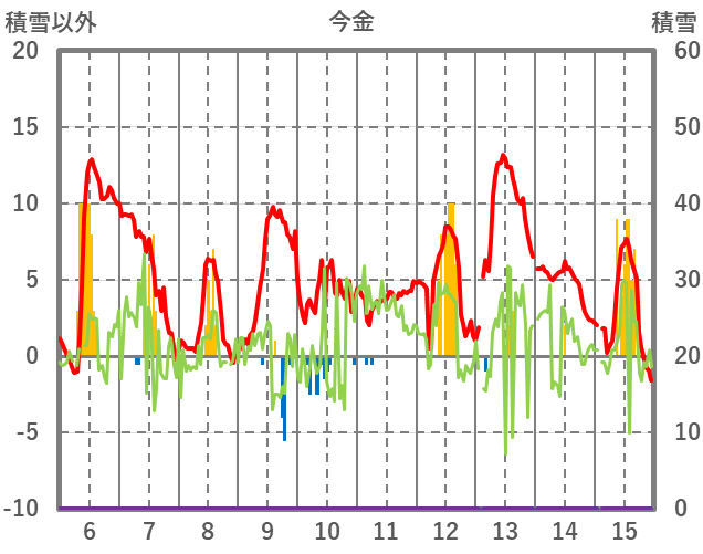 | 日 | 時 | 気温 | 降水 | 風向/風速 | 日照 | 積雪 | 降雪 |