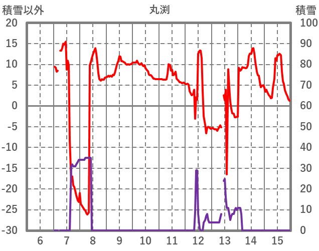 | 日 | 時 | 気温 | 降水 | 風向/風速 | 日照 | 積雪 | 降雪 |