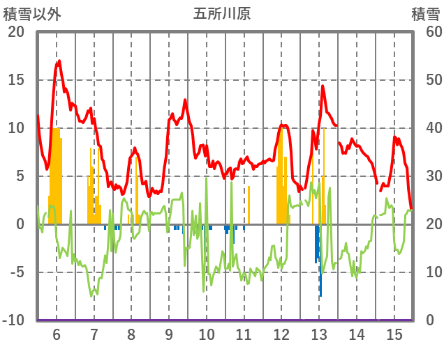 | 日 | 時 | 気温 | 降水 | 風向/風速 | 日照 | 積雪 | 降雪 |