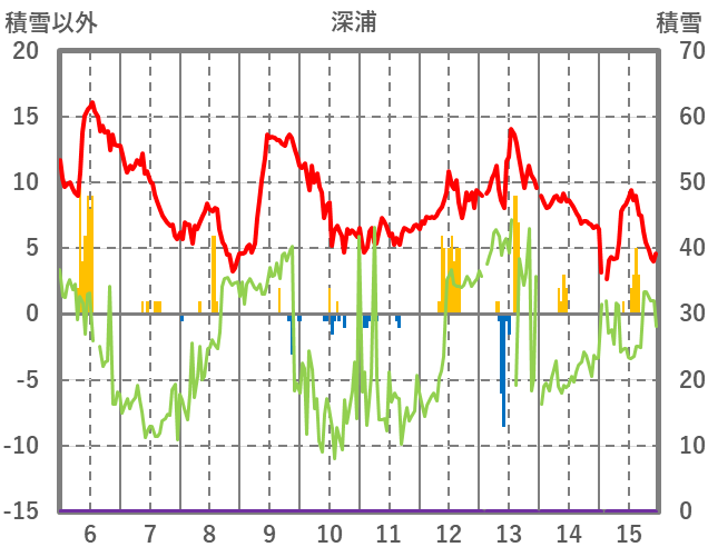 | 日 | 時 | 気温 | 降水 | 風向/風速 | 日照 | 積雪 | 降雪 |