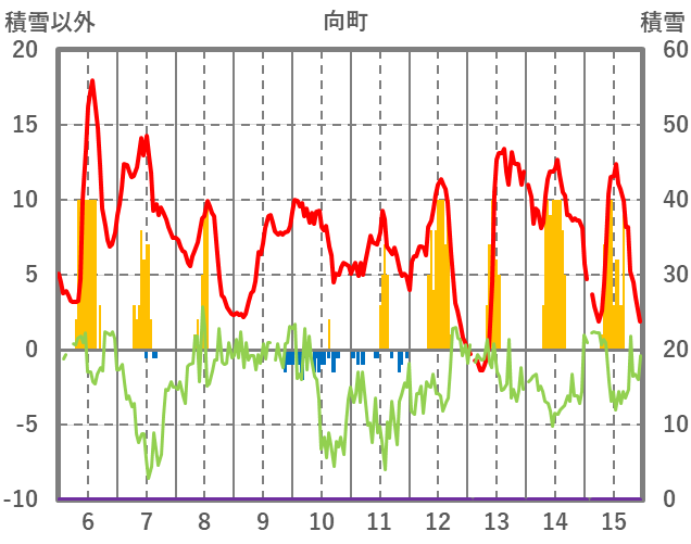 | 日 | 時 | 気温 | 降水 | 風向/風速 | 日照 | 積雪 | 降雪 |