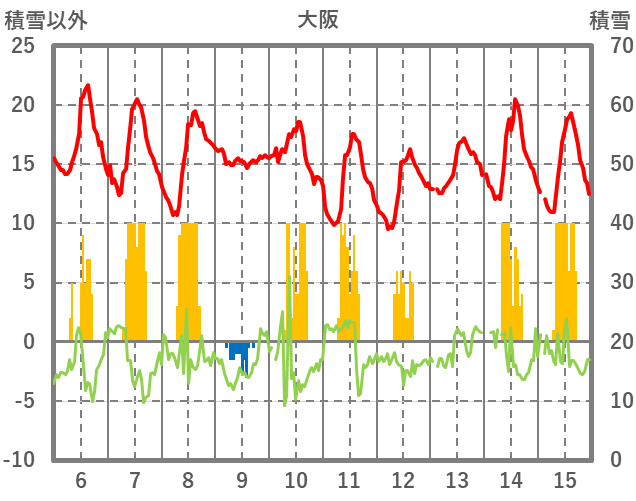| 日 | 時 | 気温 | 降水 | 風向/風速 | 日照 | 積雪 | 降雪 |