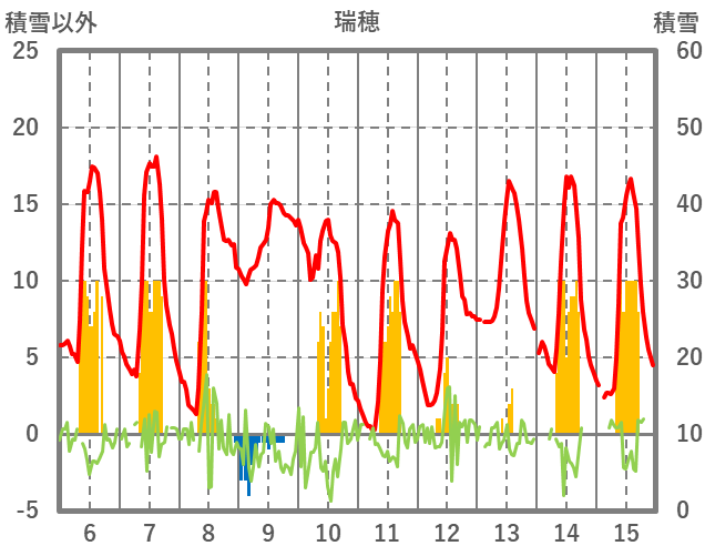 | 日 | 時 | 気温 | 降水 | 風向/風速 | 日照 | 積雪 | 降雪 |