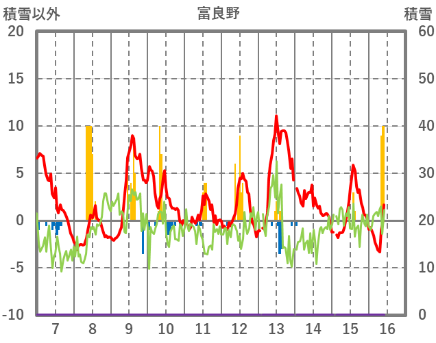 | 日 | 時 | 気温 | 降水 | 風向/風速 | 日照 | 積雪 | 降雪 |