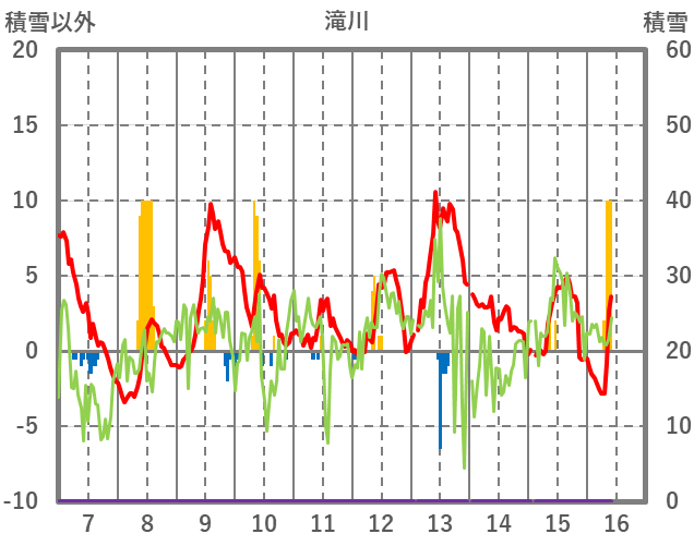 | 日 | 時 | 気温 | 降水 | 風向/風速 | 日照 | 積雪 | 降雪 |